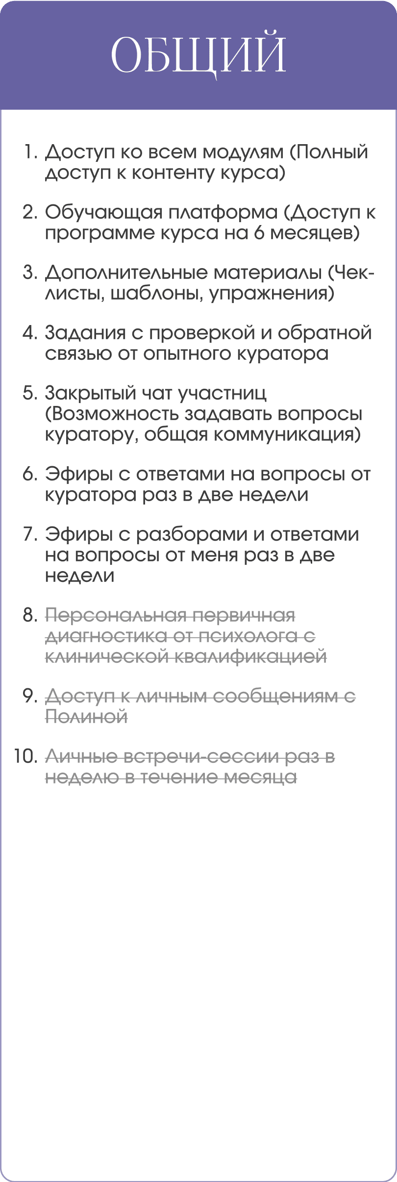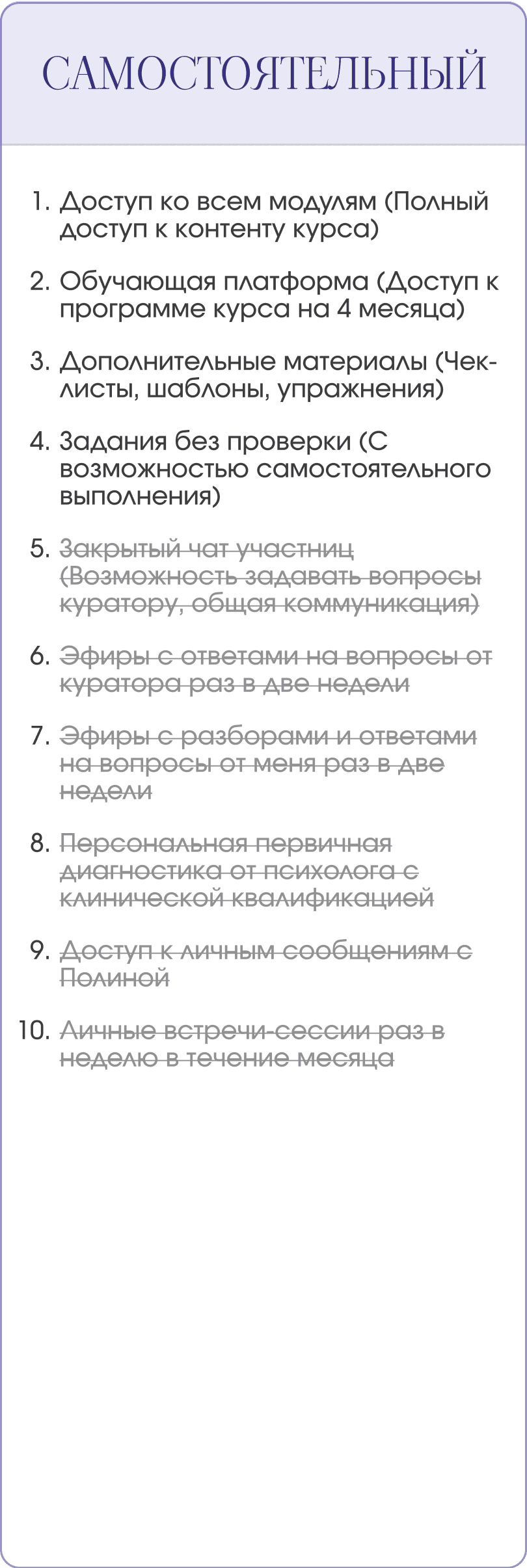 Эфиры с куратором раз в две недели (отсутствует на самостоятельном тарифе)